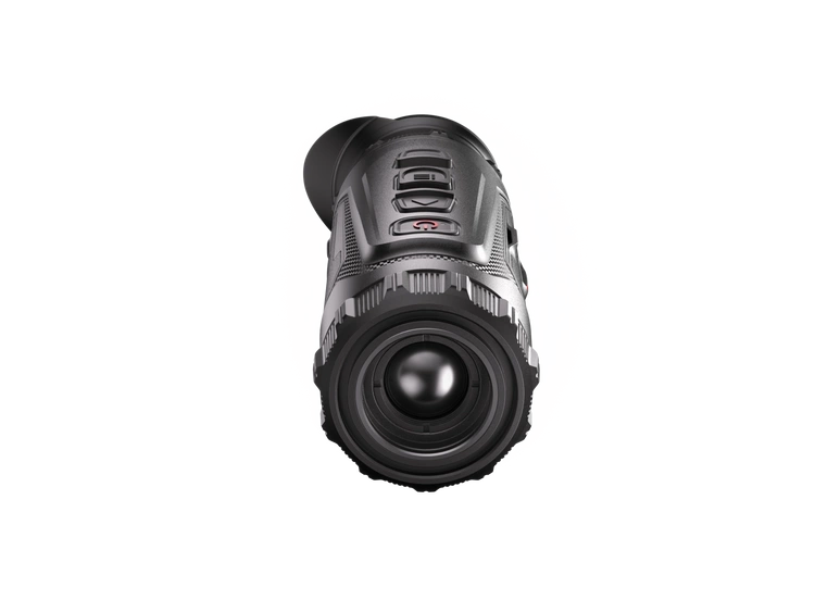 Termowizor wyposażono w sensor 384 × 288 / 12 µm oraz obiektyw 19 mm (f/1.0), co pozwala uzyskać wyraźny, kontrastowy obraz nawet w trudnym środowisku. Wysoka czułość termiczna NETD < 15 mK umożliwia dostrzeganie najdrobniejszych różnic temperatur, co znacząco ułatwia wykrywanie obiektów w lesie, na otwartej przestrzeni czy w nocy.