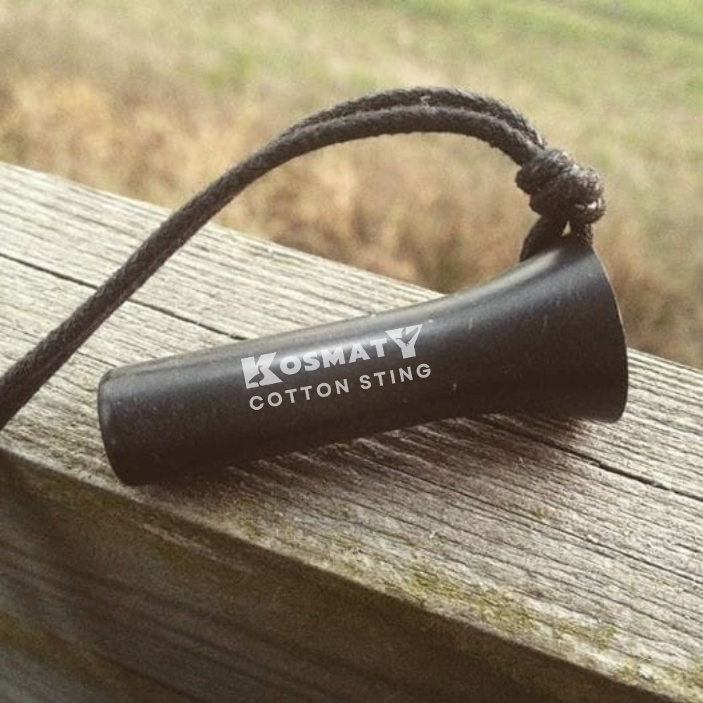 Wabik KOSMATY Cotton Sting wykonany jest techniką toczenia w poliamidzie. Poliamid w przeciwieństwie choćby do drewna gwarantuje pełną powtarzalność wabienia ponieważ nie zmienia gęstości pod wpływem wilgoci i temperatury. Dzięki temu instrument się nie wypacza i nie pojawiają się w nim przedmuchy powietrza między stroikiem a ściankami gniazda w którym jest osadzony. Toczenie z kolei, zapewnia identyczną gęstość ścianek instrumentu na całym obwodzie. Wpływa to na świetny rezonans, niemożliwy do uzyskania przy stosowaniu wtryskarek.